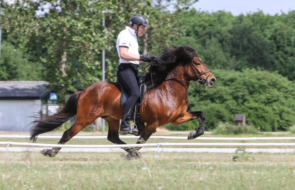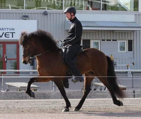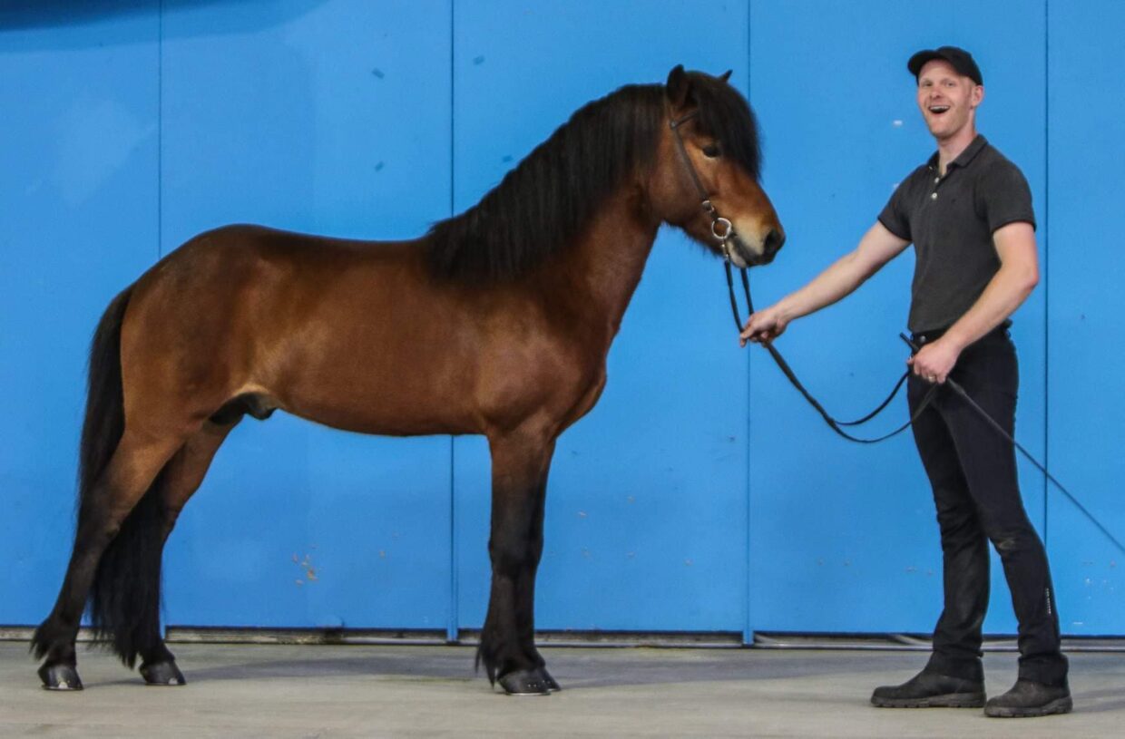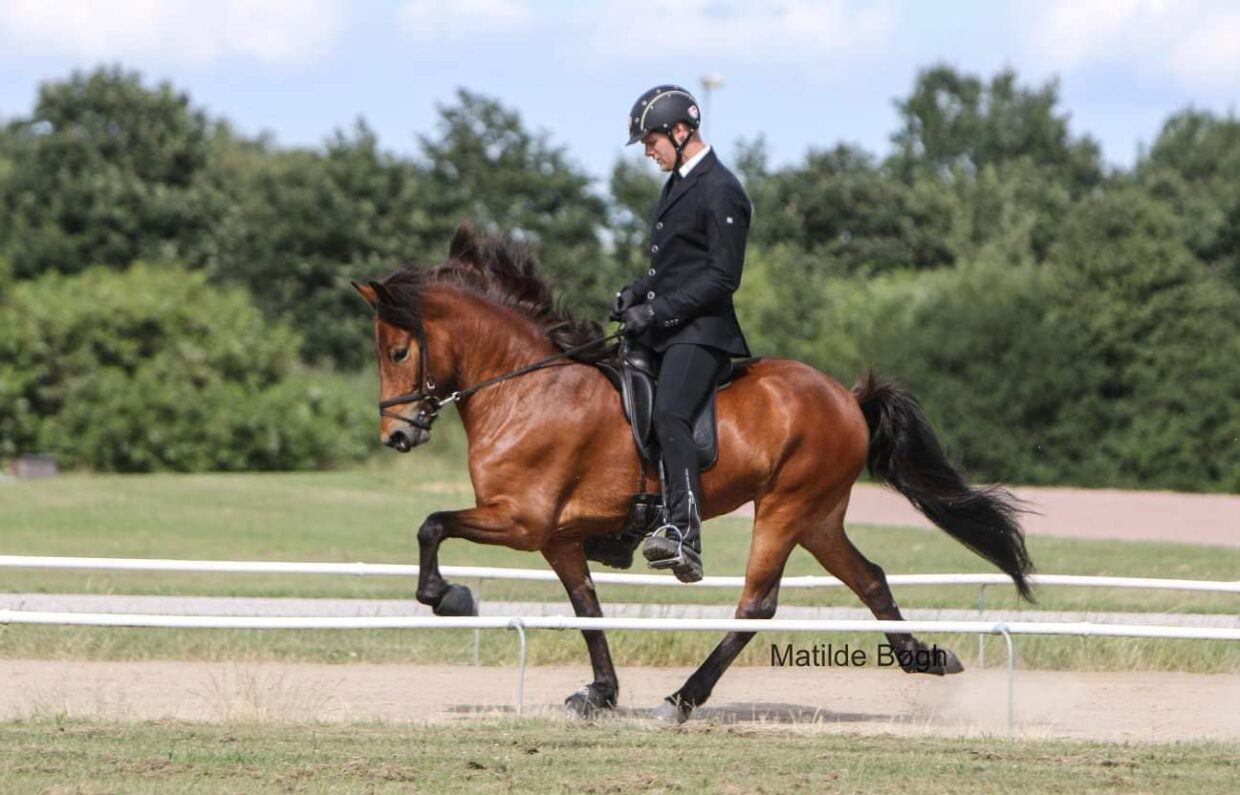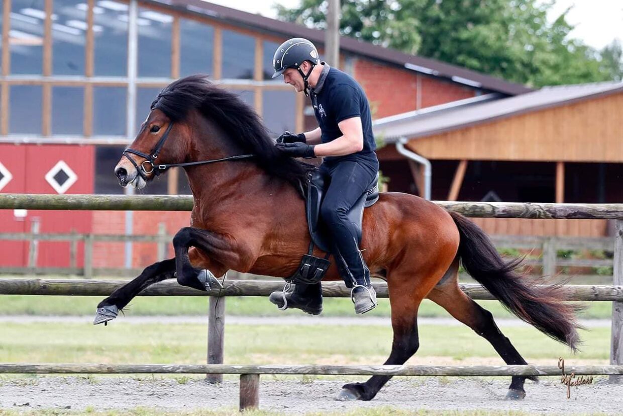 Hákon fra Engholm, født i 2013 efter Viktor fra Diisa. Kåret første gang som 5-års i 2018 med 8.48 total og 9 for RygKryds, tölt samt vilje og sind. Kåret igen i 2019, hvor han opnåede en kåring på 8.44 i BYG, 8.64 i RID og en total på 8.56 herunder 9 for RygKryds, tölt, galop, arbejdsgalop samt vilje og sind. Han blev udtaget til at repræsentere DK i avlen til VM i Berlin 2019. Hákon har ind til videre fået 54 afkom, hvoraf langt hovedparten er avlet på Stutteri Amhøj, som er de nuværende ejere. Foto: Matilde Bøgh