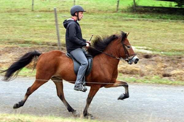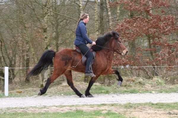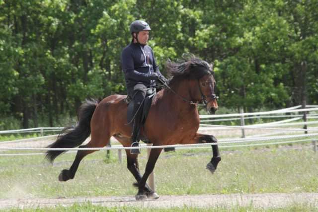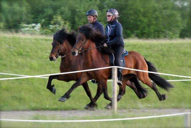 Hátíð fik 12 afkom, hvoraf de 11 er kårede og 3 afkom har repræsenteret DK i avlen til VM. Alle tre som 6-års (Hektor fra Engholm i Østrig 2011, Hákon og Hjarta fra Engholm i Berlin 2019). Hendes datter Helena Fagra fra Engholms første afkom (Hagalín fra Engholm) repræsenterede DK i avlen til VM 2023. Hendes tre hingsteafkom Hektor, Halfdan og Hósías har alle gået konkurrencer særligt i Sverige. Foto: Marianne Wiil