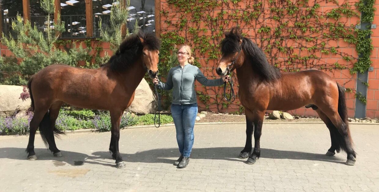 Hátíðs to sidste afkom fra 2013, Hjarta og Hakón, er nogle af de første islandske føl herhjemme lavet ved embryotransfer. De blev begge udtaget som 6-års til at repræsentere DK i avlen til VM i Berlin 2019. Foto: Trine Sofie Nielsen