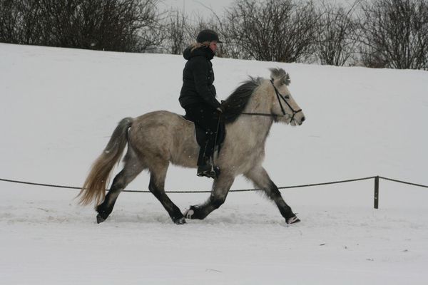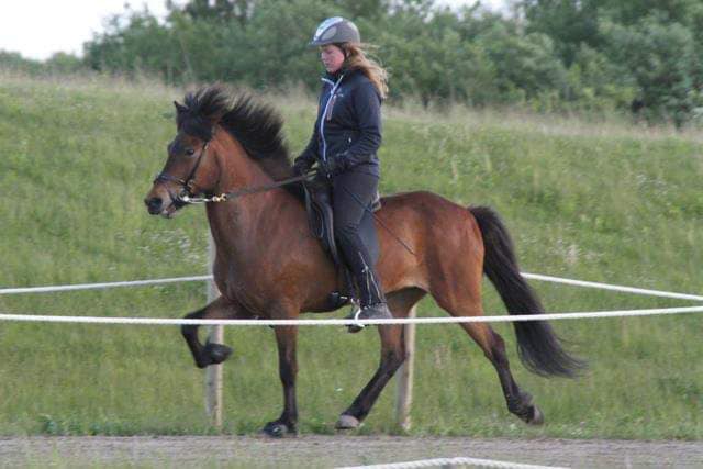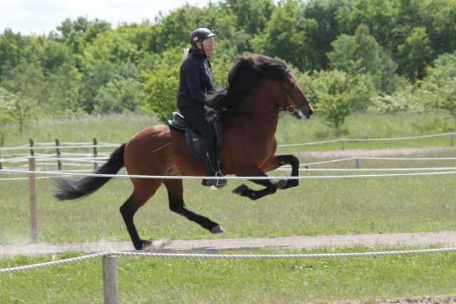 Geysa fra Lille Ensted, født i 2003 efter Páfi frá Kirkjubæ. Kåret i 2011 med 7.78 i BYG, 7,80 i RID og en total på 7.79. Hun fik tre afkom, hvoraf ét er kåret – Elding fra Lille Ensted efter Garpur frá Auðsholtshjáleigu med en total på 7.92 som 4-gænger herunder 8.5 for hals, proportioner, tölt og form u. rytter samt 9 for vilje og sind. Foto: Dea Vemming