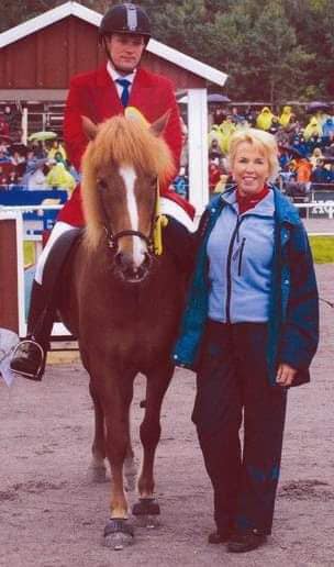 Vigdís fra Bispegården, til VM i Norrköping. Rytter er Rasmus Møller Jensen og ejer Grethe Sæther ved siden. Foto: Kari Baklund