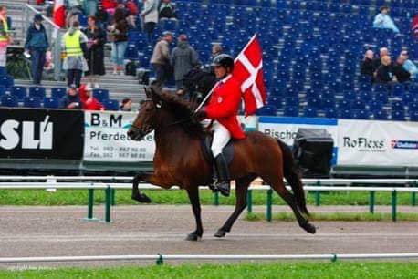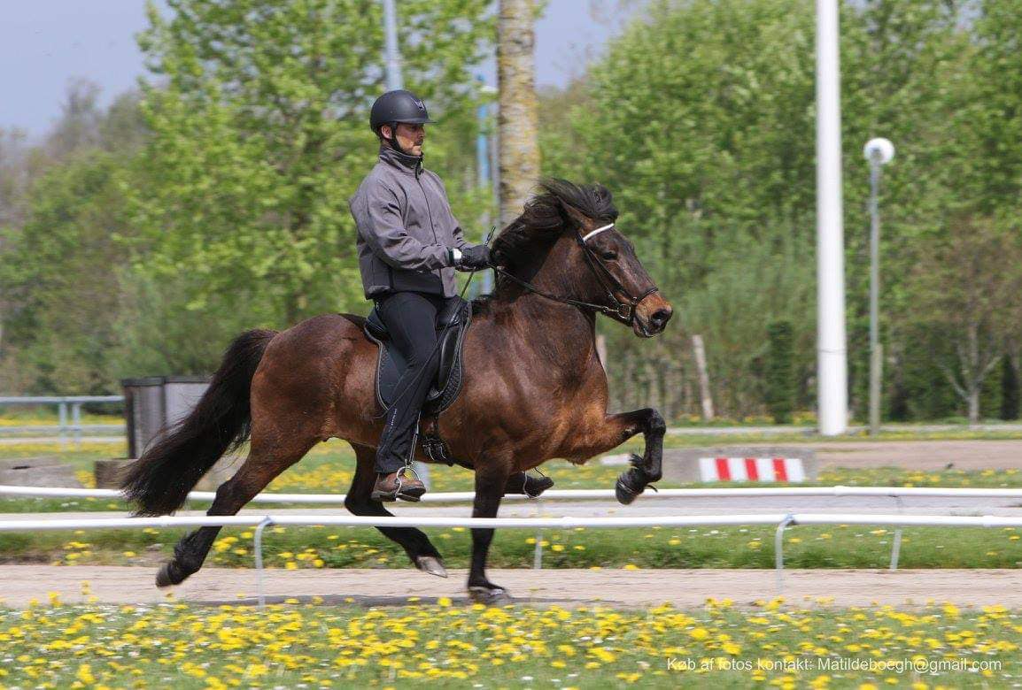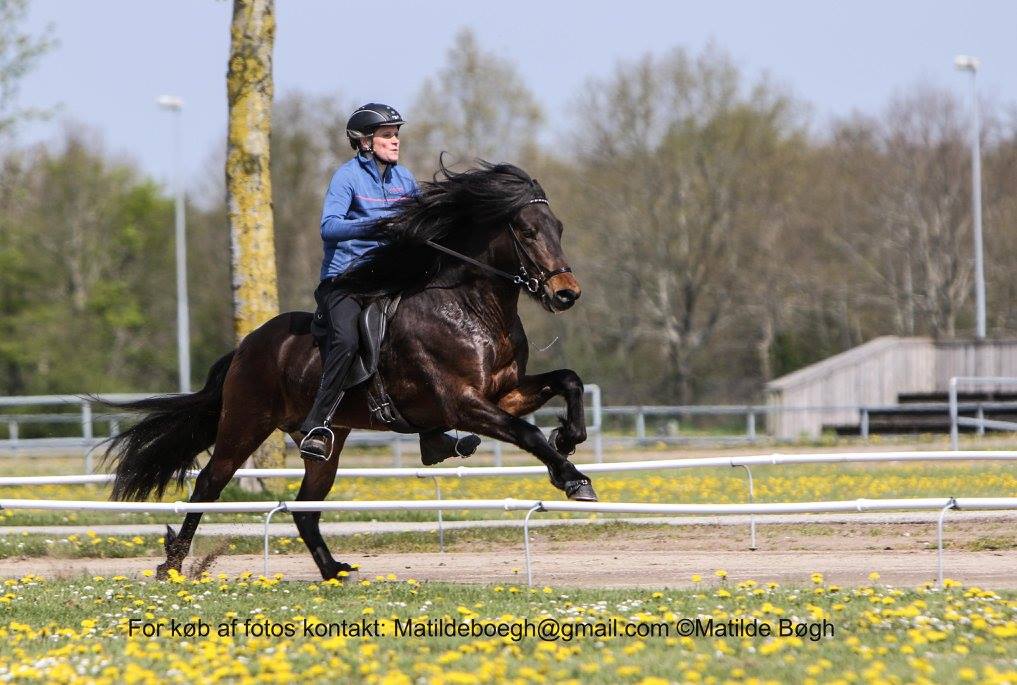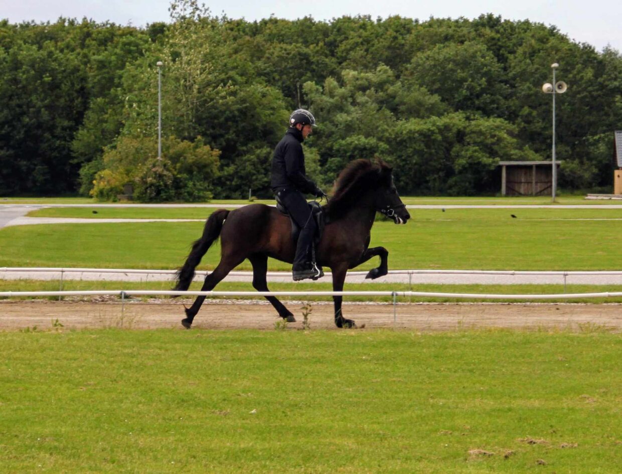 Højest kårede afkom efter Vigdís er Ljosi fra Bispegården, født i 2008 efter Krókur frá Efri-Rauðalæk. Ljosi repræsenterede DK i avlen til VM 2013 i Berlin og var i 2018 til NM i sporten med sin ejer Anders Stokbro. Ljosi har fået 35 afkom heraf ét kåret. Foto: Sabine Sebald