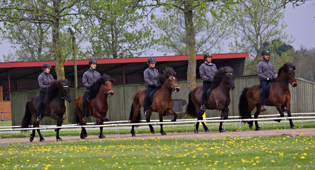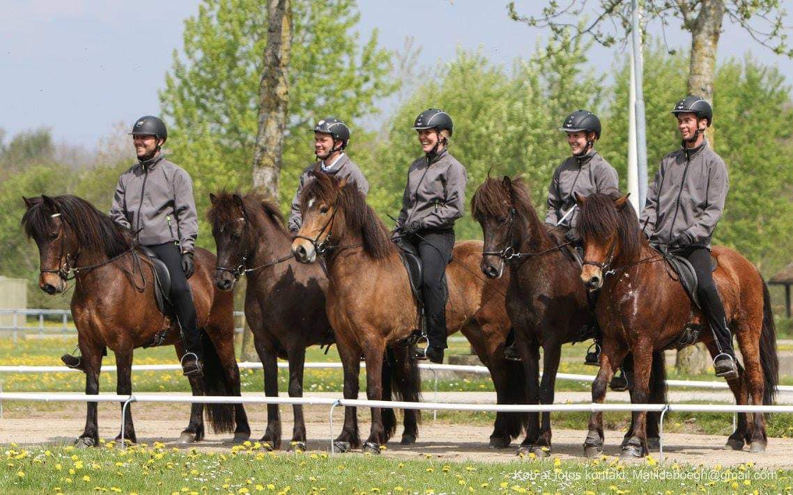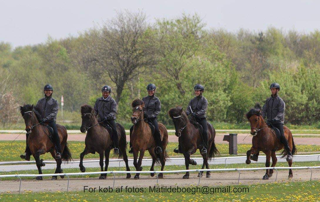 Fríðas afkomssamling i Herning 2017 Fra venstre: Starri fra Jelshøjen/Sys Pilegaard Jósteinn fra Bispegården/ny rytter Keila fra Beder/Iben Andersen Elva fra Beder/Rasmus Møller Jensen Sóley fra Beder/Nils-Christian Larsen. Foto: Matilde Bøgh