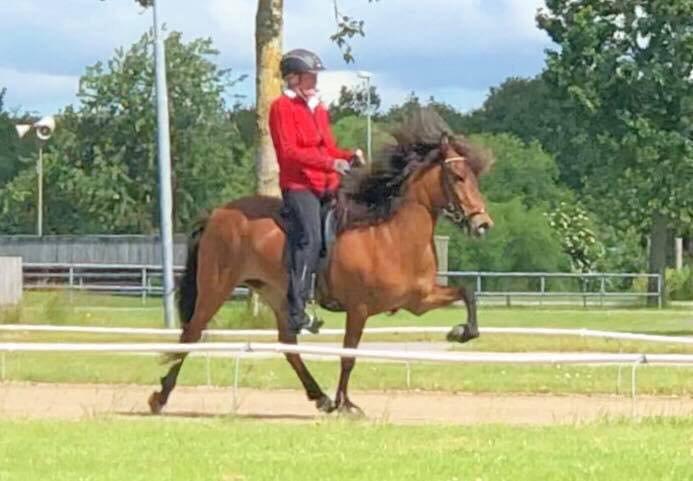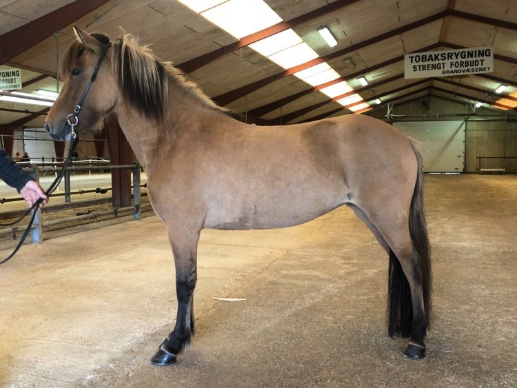 Fjóla fra Beder, født i 2007 efter Krókur frá Efri-Rauðalæk. Avlet af Kirstine Agersnap. Kåret i 2016 som 9-års med 7.89 i BYG, 7.58 i RID og en total på 7.71 med 5.5 for pas og ellers ingen delkarakterer i RID under 8. Hun har ind til videre fået fire afkom og venter i 2024 føl efter Viðar frá Skör. Foto: Ane Helene Thorhauge Sandholm