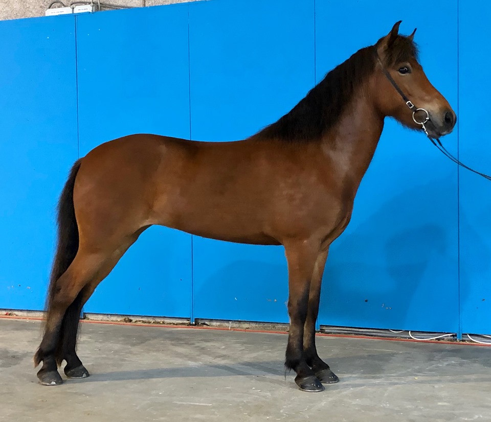 Vigdís-datteren Silja fra Bispegården, født i 2013 efter Tónn frá Ólafsbergi. Kåret som 6-års i 2019 med 7.73 i BYG, 7.57 i RID og en total på 7.63 herunder 8.5 for vilje og sind samt 9 for rygKryds. Har fået ét afkom. Foto: DI – avl og kåringer