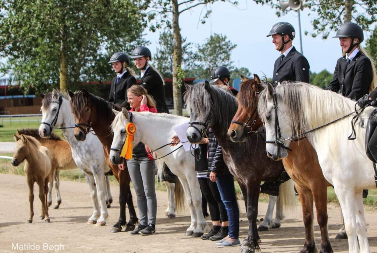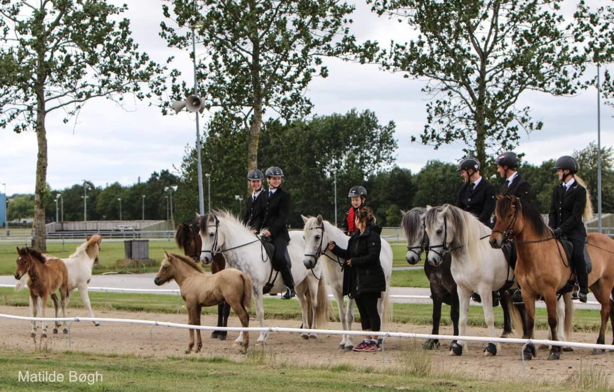 Fra Drótts afkomskåring i Herning. Drótt med føl ved siden/Tristan Madsen og Álfadís fra Debelmose/Sara Lindholt Andersen. Foto: Matilde Bøgh