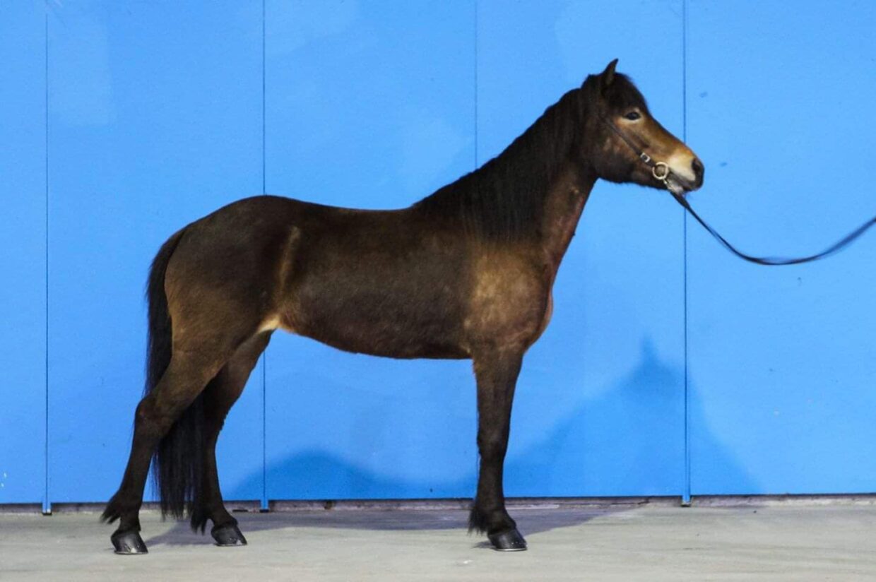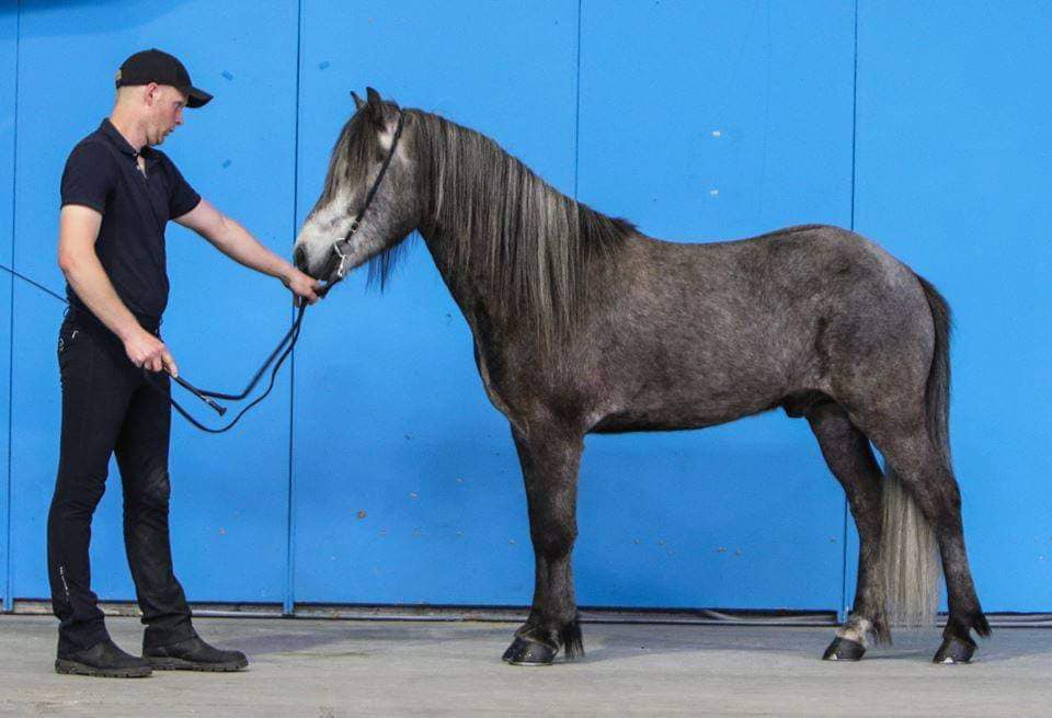 Blær fra Debelmose, født i 2013 efter Arður frá Þúfu í Landeyjum. Kåret som 5-års vallak i 2018 med 8.15 i BYG, 8.07 i RID og en total på 8.10 som 4-gænger herunder 8.5 for proportioner, hove, hårpragt, tölt, trav, form u. rytter, skridt og langsom tölt, 9 for arbejdsgalop, vilje og sind samt 9.5 for galop. Foto: DI – avl og kåringer