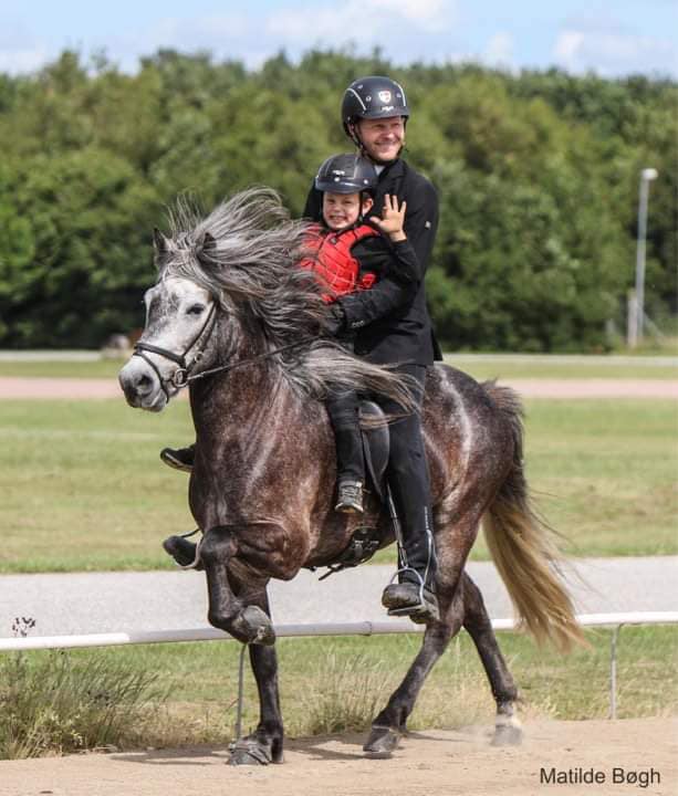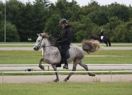Orka fra Debelmose, født i 2011 efter Arður frá Þúfu í Landeyjum. Kåret som 5-års i 2016 med 7.79 i BYG, 8.15 i RID og en total på 8.01 som 4-gænger herunder 8.5 for trav, form u. rytter, skridt og langsom tölt samt 9 for tölt, galop, vilje og sind. Hun har fået seks afkom og venter i 2024 føl efter Nökkvi fra Bendstrup. Foto: Debelmose